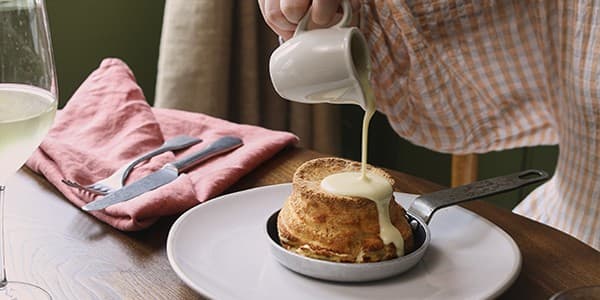 Our twice-baked cheese soufflé is an iconic dish here at The Ropemaker – light, airy, and so utterly delicious.