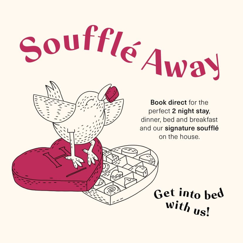 Whether you’re after cosy comfort or a little foodie indulgence, book your Soufflé Away package now to treat yourselves and make this February one to remember.